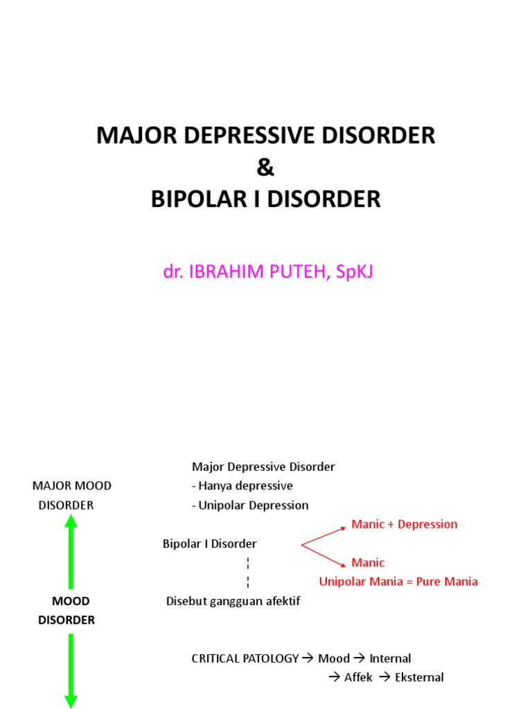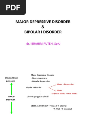 Major-Depression Disorder MDD Frousakis 2015 MDD adalah satu keadaan perubatan dimana ia dikenalpasti melalui satu atau lebih depressive episode Episode merupakan satu keadaansituasi yang dialami oleh seseorang individu yang berisiko mengalami depression Seseorang yang mengalami MDD menyebabkan dalam situasi depress mood hilang minat untuk melakukan apa sahaja Jangka masa. May dalawang pangunahing uri ng depresyon ang major depressive disorder at persistent depressive disorder.